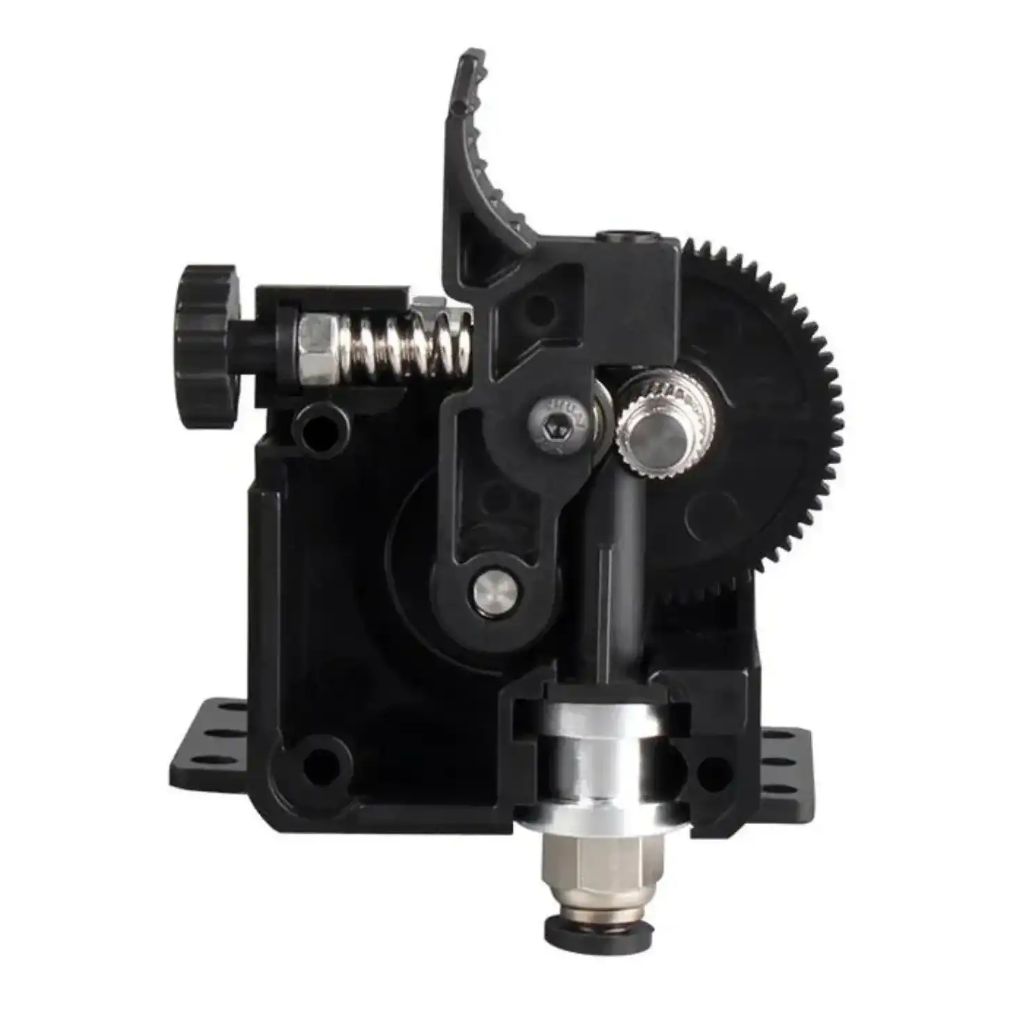 Titan Extruder ünitesi modern katmanlı imalat sistemlerinde filament sevk kararlılığını teknik bir mükemmeliyete ulaştırmak amacıyla geliştirilmiş ileri seviye bir tahrik çözümüdür. 3:1 dişli oranı sayesinde motor torkunu üç katına çıkarırken kafa ağırlığını minimize eden bu donanım özellikle Direct Drive sistemlerde eylemsizliği düşürerek baskı kalitesini stabilize eder.