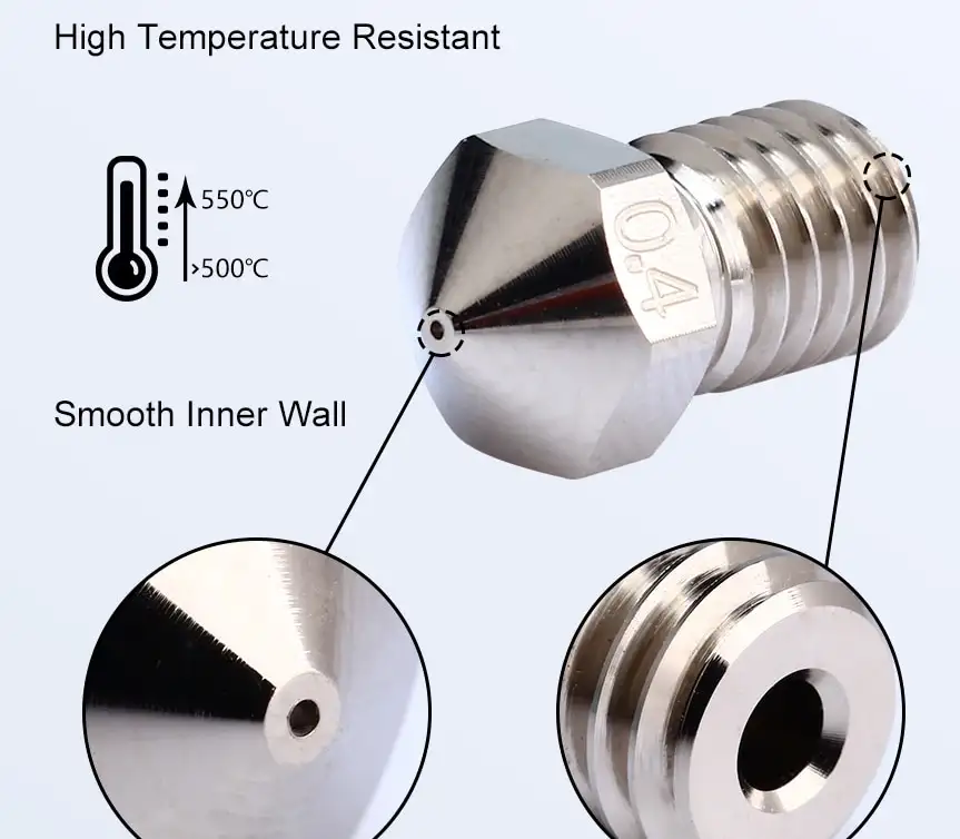 Bu bakır alaşımı çok sıcaklıkta esnektir ve diğer nozulların işleyemeyeceği yüksek sıcaklıkta baskı için mükemmel hale getirerek, 500 ° c'nin ötesine kadar yumuşamaya veya tavlamaya başlamayacaktır.