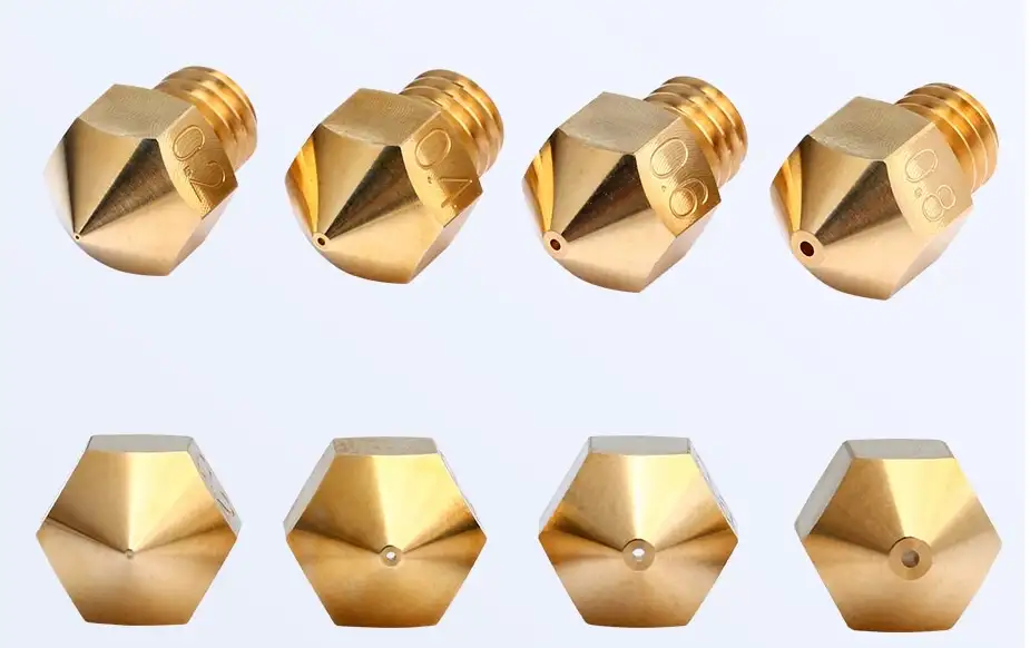- Çıkış Çapı: 0.2 mm, 0.4 mm, 0.6 mm, 0.8 mm gibi farklı çap seçenekleriyle hassas baskıdan hızlı üretime kadar geniş bir kullanım aralığı sunar.