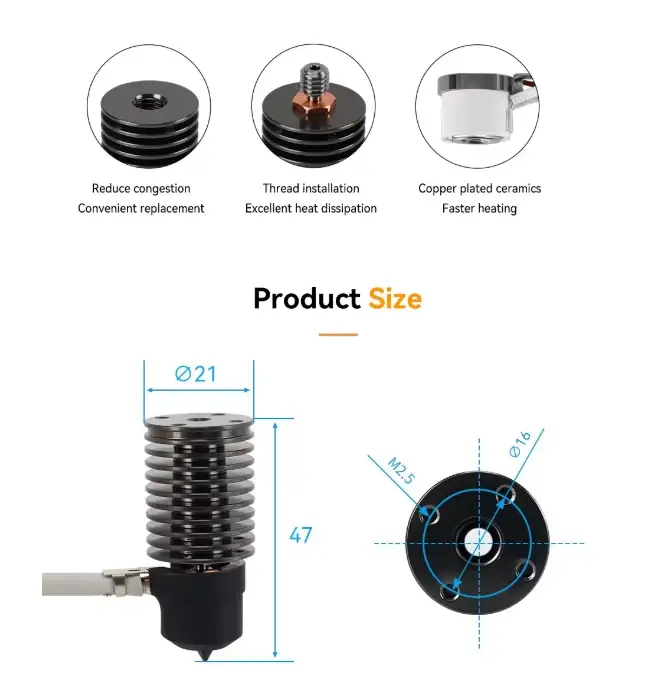 Hızlı Isınma ve Enerji Verimliliği: Geleneksel alüminyum hotendlere göre %30 daha hızlı ısınır, enerji tasarrufu yaparken zamandan kazandırır.