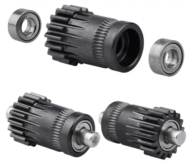 Sürücü dişlisi sertleştirilmiş çelikten, taşıyıcı dişliler ise hafif ama sağlam POM malzemeden üretilmiştir.