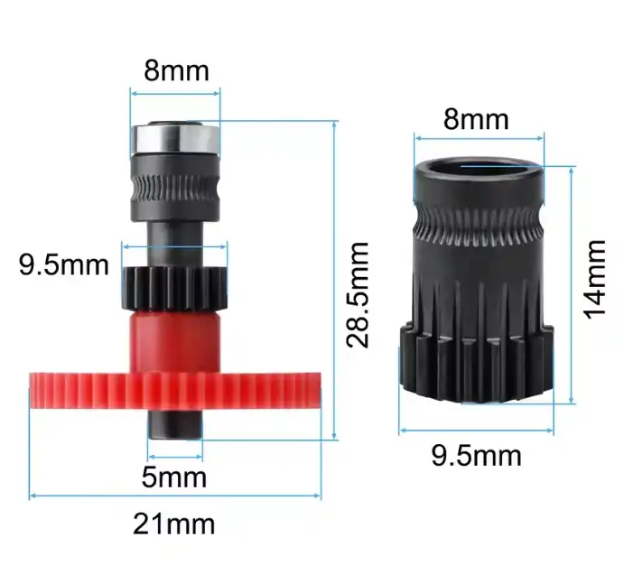 Voron CW1 ve CW2 extruder sistemleriyle uyumlu olan bu yüksek kaliteli dişli seti, filament beslemesini optimize ederek daha istikrarlı ve güvenilir baskılar elde etmenizi sağlar. CNC işlenmiş parçalar yüksek hassasiyet sunar ve dayanıklı malzemelerden üretildiği için uzun ömürlü kullanım vadeder. Helisel diş yapısı sayesinde sessiz çalışma ve daha yumuşak filament aktarımı sağlanırken, filamentin daha dengeli beslenmesi baskı kalitesini önemli ölçüde artırır.