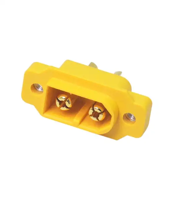 XT-60E Erkek Konnektör - Panel Bağlantılı, enerji iletim sistemlerinde, batarya bağlantılarında ve endüstriyel projelerde güvenli, sağlam ve verimli bir bağlantı sağlar. Yüksek akım taşıma kapasitesi, dayanıklı malzeme yapısı ve kolay montaj özelliği ile XT-60E Erkek Konnektör endüstriyel projelerinizde ve hobi çalışmalarınızda uzun ömürlü bir kullanım sunar.