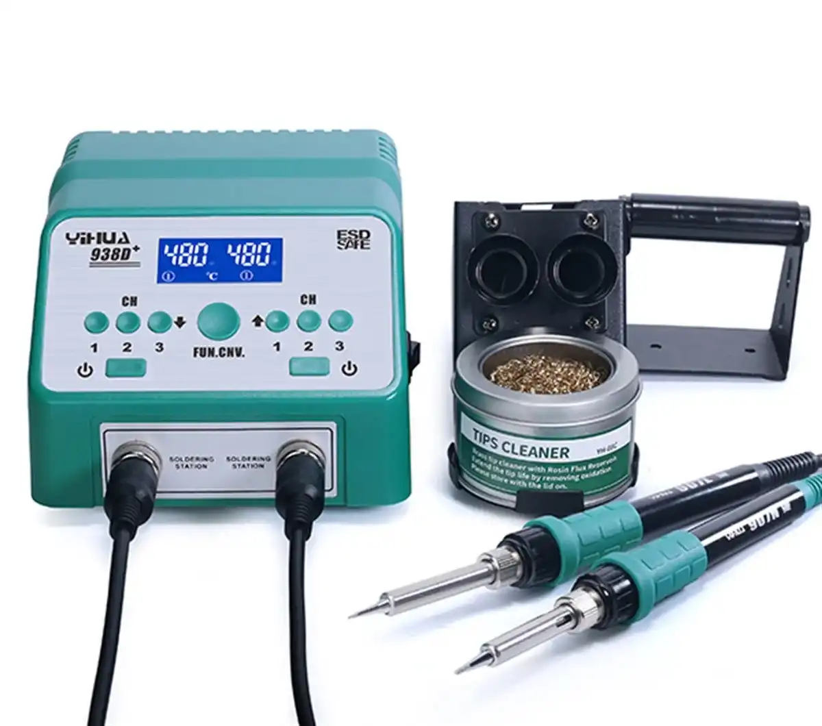 Sıcaklık düzeltme fonksiyonu: Çevresel etkilere veya yedek ısıtıcıya uyarlanarak, demir sıcaklığından ve ekran sıcaklık sapmasından kaynaklanan demir baş parçaları, kalibrasyon sıcaklık aralığı olan bu işlevle düzeltilebilir: -50 ? ~ + 50 ?Kurşunsuz lehimlemeye uygun, ikili istasyonlu havya. Toplam 180W gücünde, otomatik uyku, otomatik kendini kapatma özelliği, ESD gövdeli . Her iki havya da aynı anda kullanılabilir.