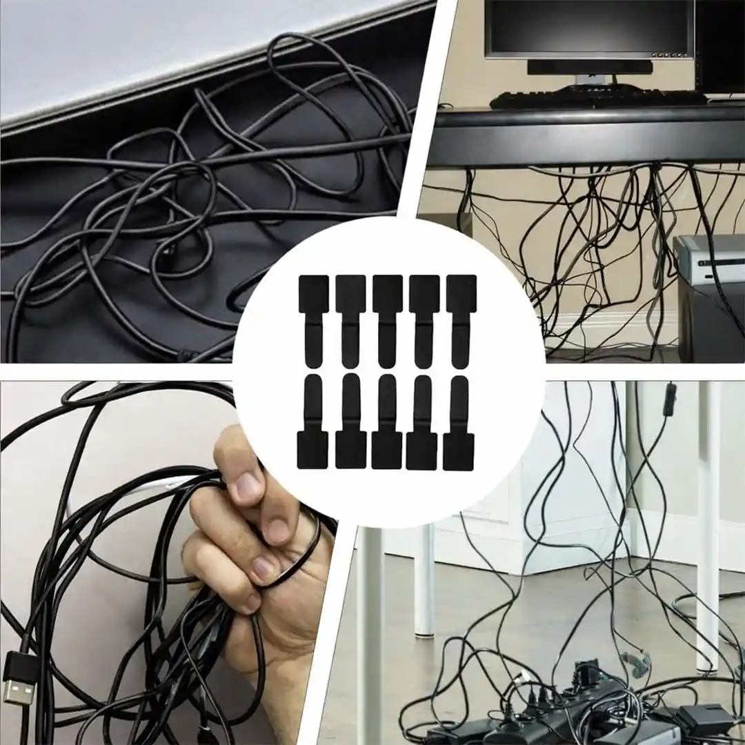 Siyah Yapışkanlı 10'lu Kablo Düzenleyici