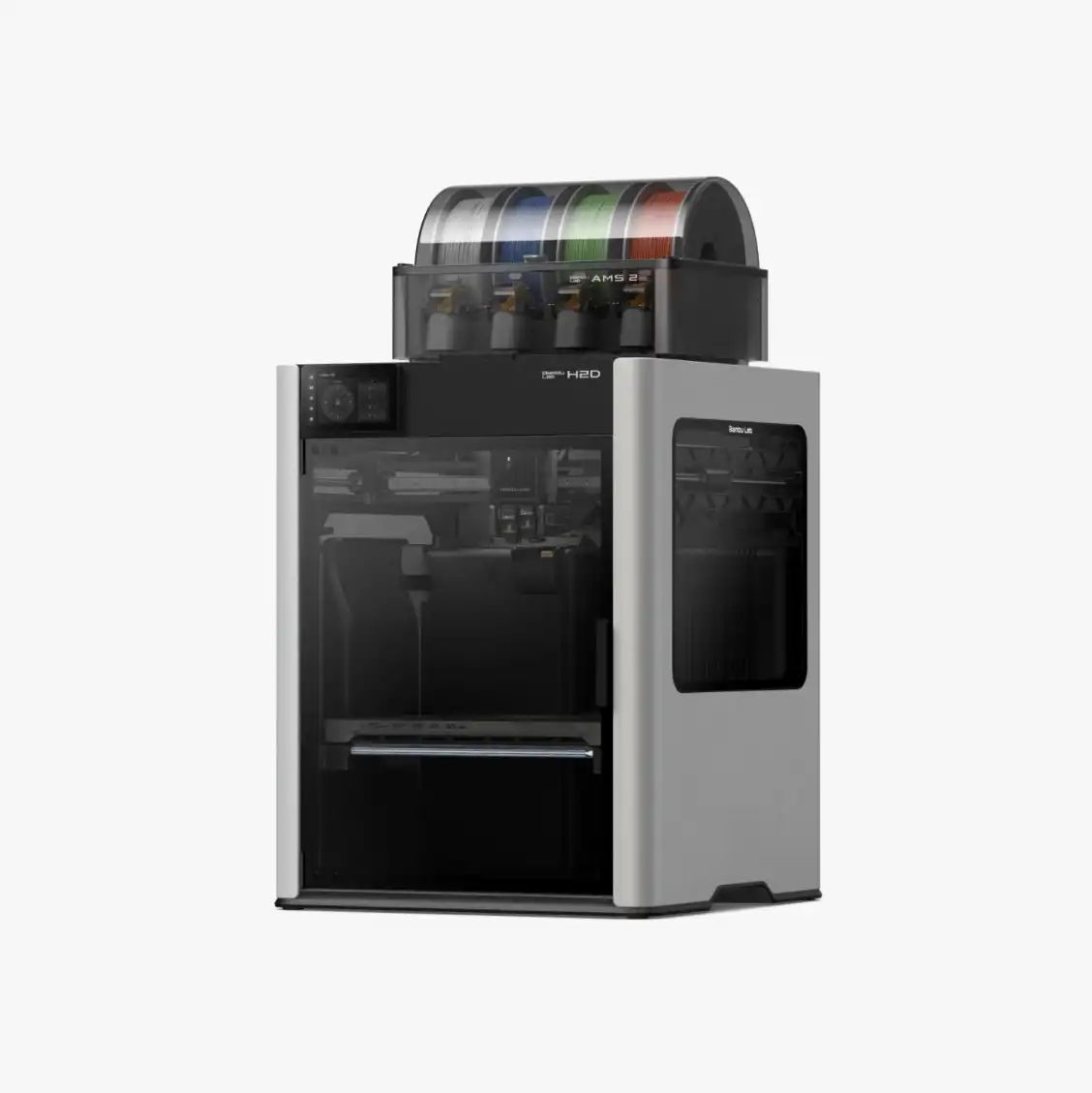 Bambu Lab H2D Combo, çift baskı kafası (IDEX) ve dahil olan AMS 2 Pro ünitesi ile çok renkli ve çok malzemeli üretimde yeni bir standart belirler. Kutudan çıktığı andan itibaren dört farklı renge veya malzemeye kadar zahmetsizce baskı yapmanıza olanak tanır. Aktif ısıtmalı kapalı kabini ve 350°C'ye ulaşan nozzle sıcaklığı ile endüstriyel sınıf filamentlerde üstün performans sunar.