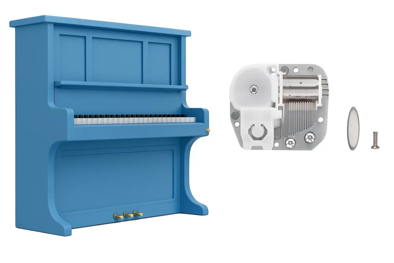 - Hazır Mekanizma: Kurmalı motor ve melodi silindiri içeren montajlı ana ünite.