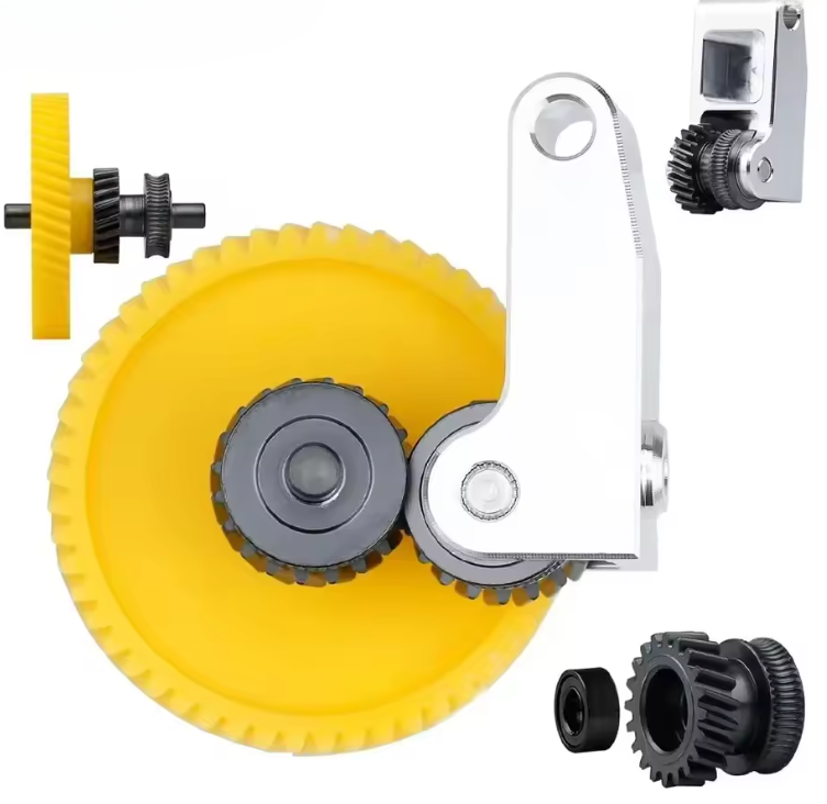 Sertleştirilmiş çelik ekstrüder dişli takımı, sertleştirilmiş çelik ekstrüder ünitesinin iç bileşenidir. Filamanı hotend te beslemek için birlikte çalışan bir tahrik dişlisi ve aktif bir dişli içerir.