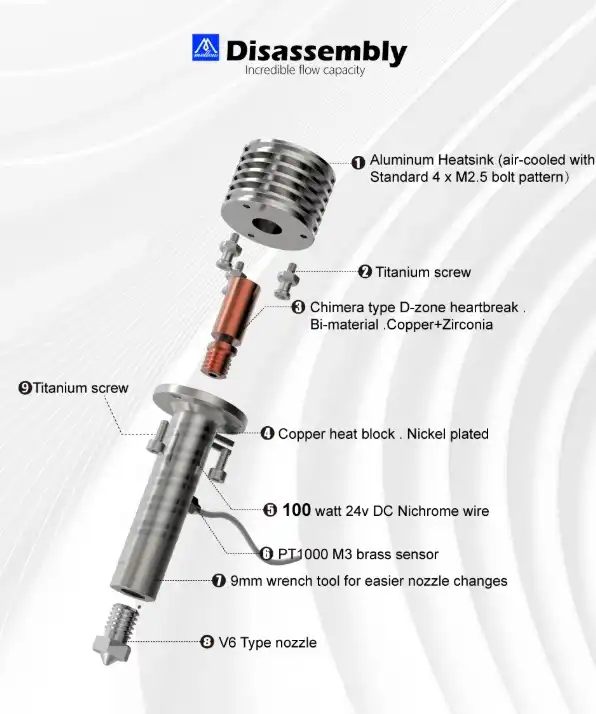 - Avantaj: Filament akışını optimize eden pürüzsüz iç kanal ve gelişmiş termal bariyer teknolojisi.