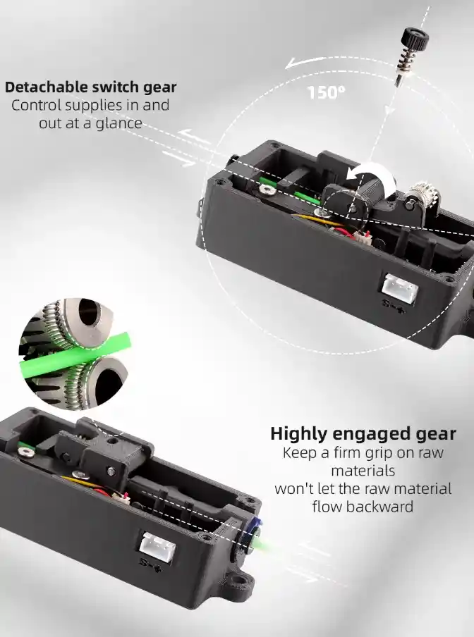 Özellikle çoklu filament sistemlerinde ve uzun süreli endüstriyel baskılarda kritik bir rol oynayan bu ünite, itici mekanizması sayesinde filamentin geri çekilme (retraction) süreçlerinde oluşabilecek dolaşmaları engeller. Dayanıklı bileşen yapısı ve kolay montaj imkanı ile yazıcınızın operasyonel verimliliğini artırırken, filament kaynaklı baskı hatalarının önüne geçerek kesintisiz bir üretim deneyimi sunar.
