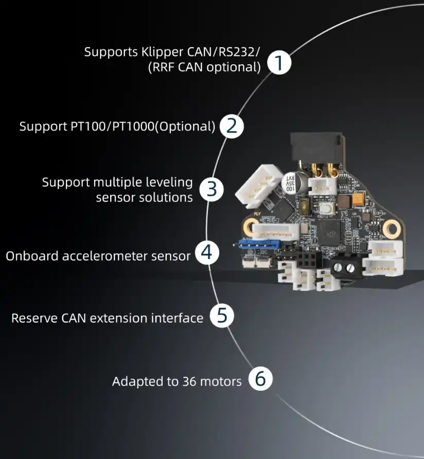 - Zengin Çıkışlar: RGB LED çıkışı, endstop bağlantıları ve CAN genişleme portu (XH2.54-2P).