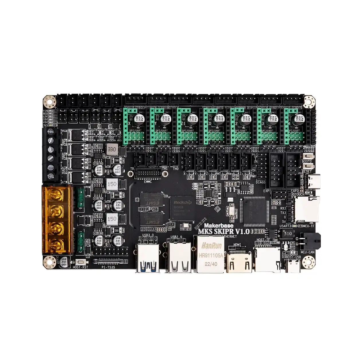MKS SKIPR, 3D yazıcılarda Klipper bellenimini çalıştırmak için özel olarak tasarlanmış "hepsi bir arada" hibrit bir kontrol kartıdır. Bu anakart, harici bir Raspberry Pi ihtiyacını ortadan kaldırarak; Klipper host görevini üstlenen güçlü bir SOC (RK3328) ile makine hareketlerini yöneten MCU (STM32F407) birimlerini tek bir PCB üzerinde birleştirir.