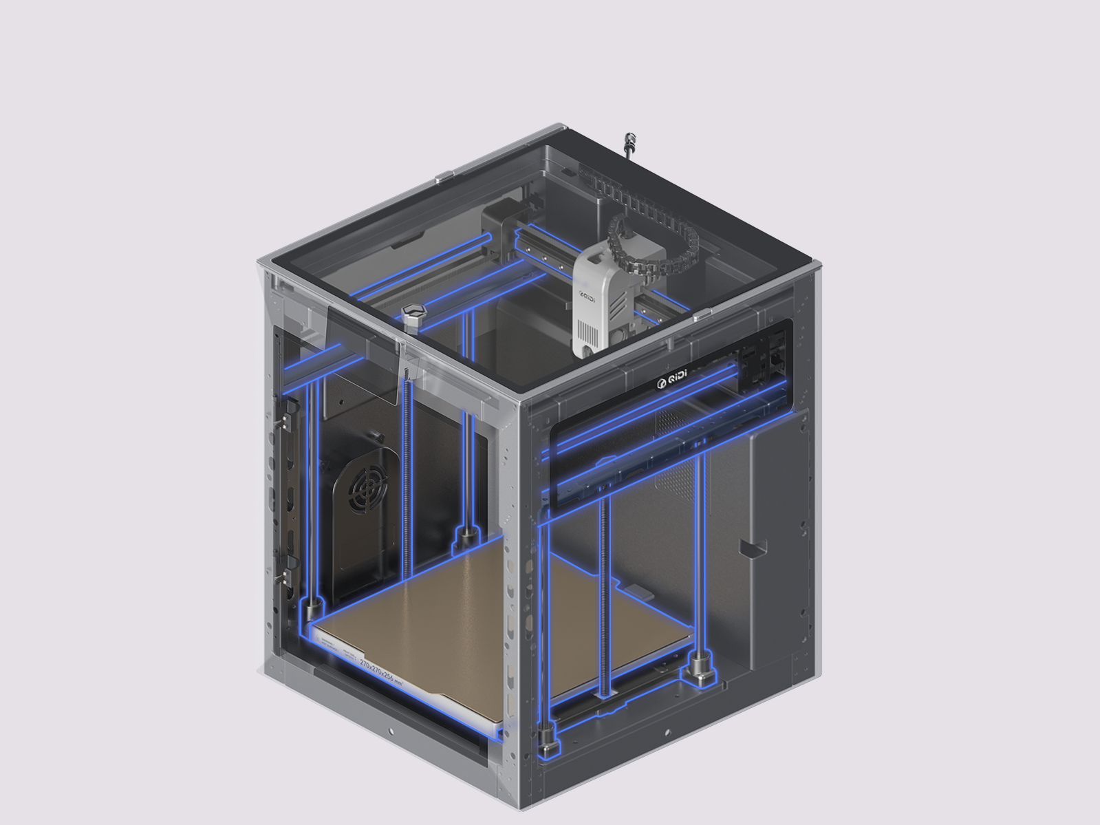 CoreXY Yapısı ve Hassas Hareket Sistemi: Sağlam metal CoreXY iskelet yapısı, endüstriyel sınıf lineer raylar ve yüksek yoğunluklu zamanlama kayışları sayesinde QIDI Q2, yüksek hızlarda bile olağanüstü hassasiyet ve stabilite sunar. Bu sayede baskılarınızda pürüzsüz yüzeyler ve keskin detaylar elde edersiniz.