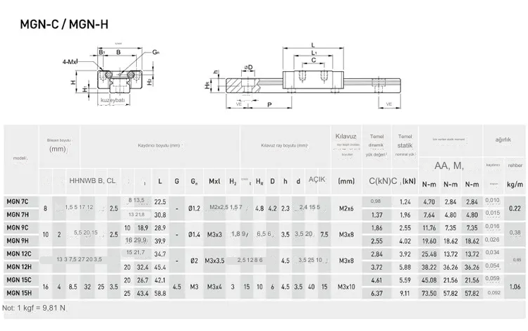 Üst Kalite KGT MGN7 Paslanmaz Çelik Lineer Ray